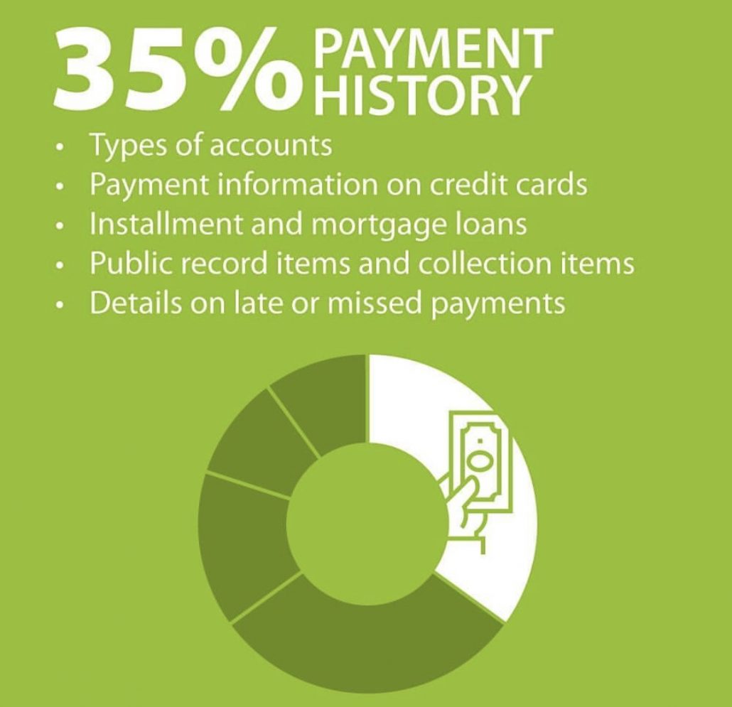 Timely mortgage payments are weighted heavily by the scoring systems and are one of the most vital requirements that lenders look for when evaluating your credit history. Many times a single late mortgage payment within the last 12 months can hold up your file or spell the difference between the best interest rate and the next credit level. Your payment history on other debts (car payments, credit cards, etc.) is also given a lot of weight.